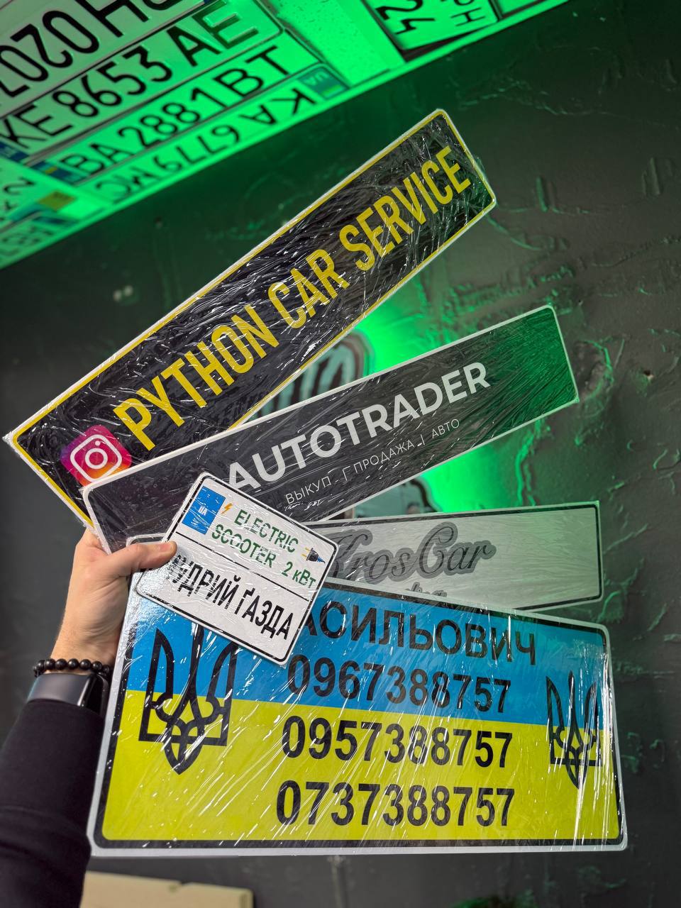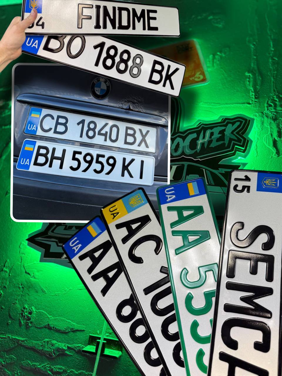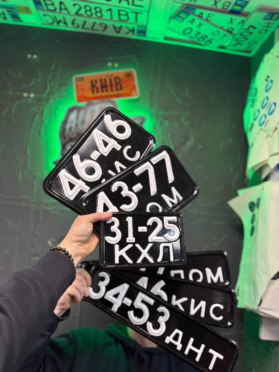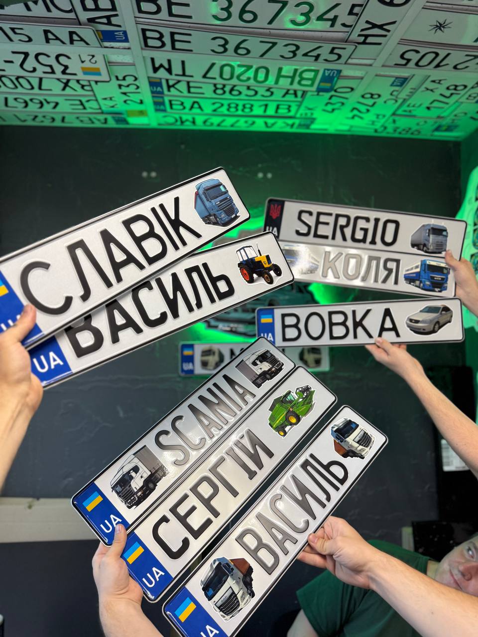 ОФІЦІЙНІ номерні знаки для: легкового, пасажирського та для вантажного транспорту; моторолерів та мотоциклів; причепів; спецтехніки (екскаватор, навантажувач, трактор тощо).